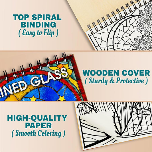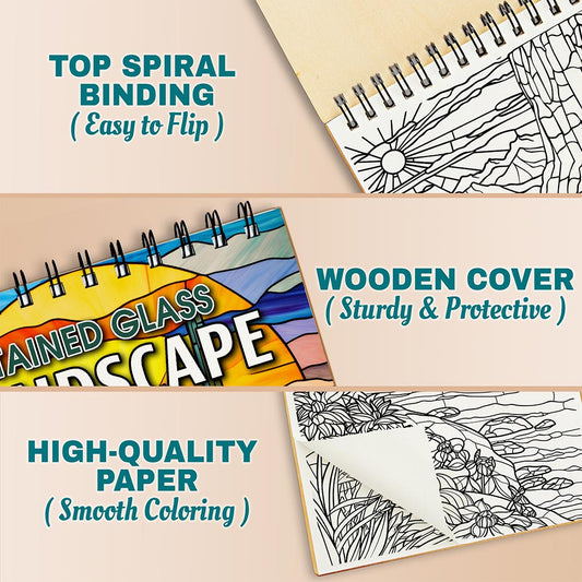 Netecom Stained Glass Landscape Coloring Book Spiral...