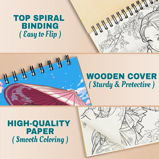 Netecom Pretty Kimono Coloring Book Spiral Bound for...