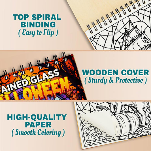 Netecom Stained Glass Halloween Coloring Book Spiral...