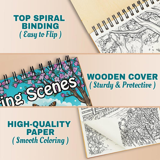 Netecom Spring Scenes Coloring Book Spiral Bound for...