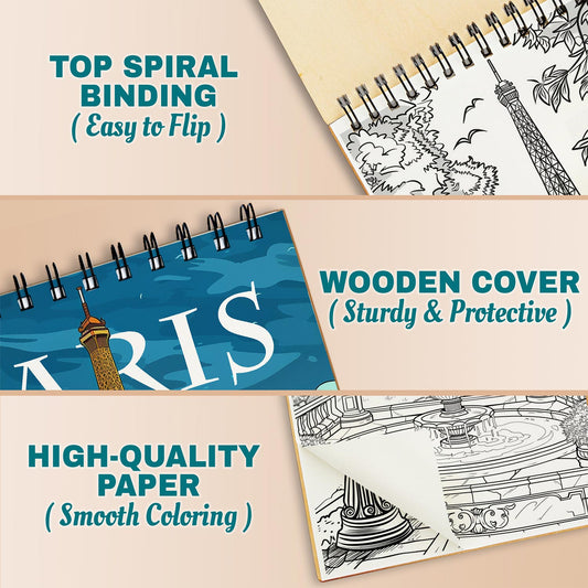 Netecom Paris Coloring Book Spiral Bound for Adults,...