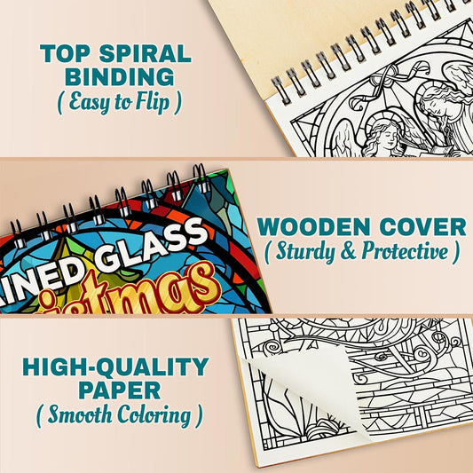 Netecom Stained Glass Christmas Coloring Book Spiral...