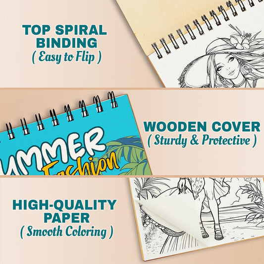 Netecom Summer Fashion Coloring Book Spiral Bound fo...