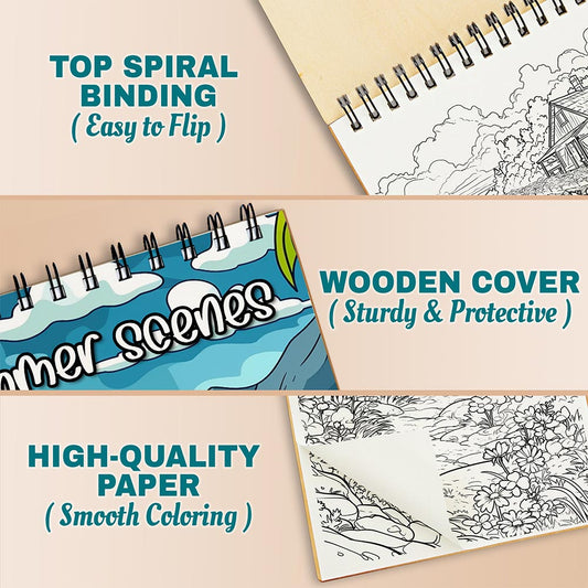 Netecom Summer Scenes Coloring Book Spiral Bound for...