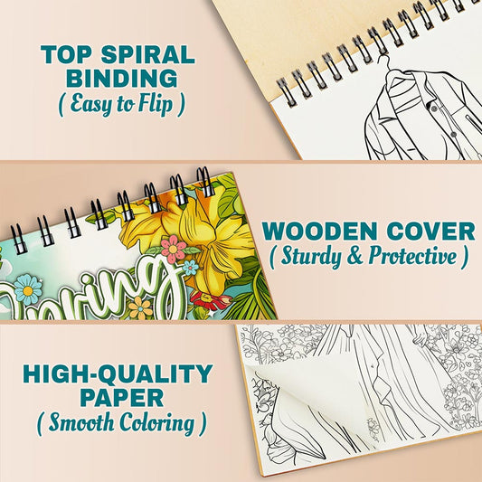 Netecom Spring Fashion Coloring Book Spiral Bound fo...