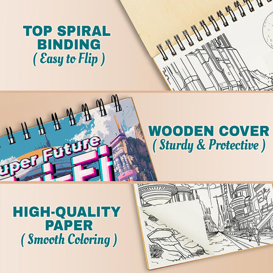 Netecom Super Future Sci-Fi Coloring Book Spiral Bou...