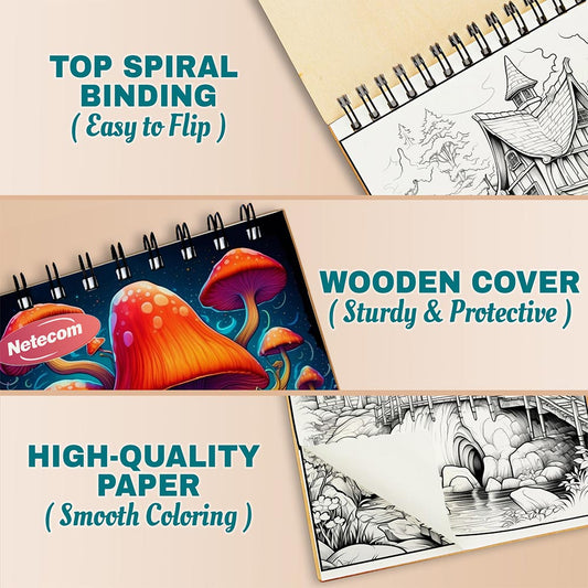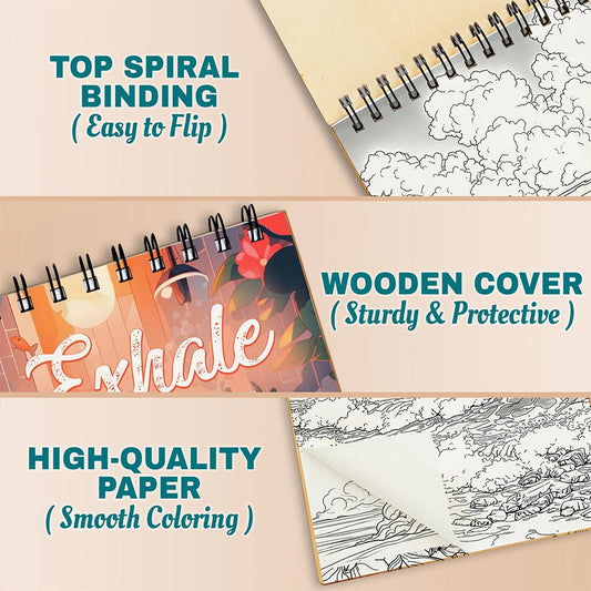 Netecom Exhale Coloring Book Spiral Bound For Adults...