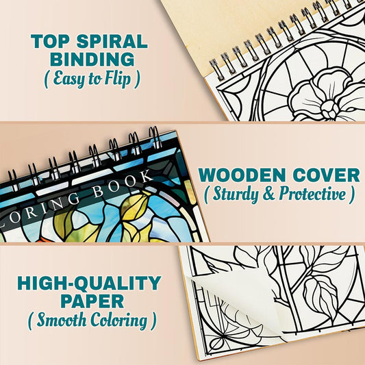 Netecom Flowers Stained Glass Coloring Book Spiral B...
