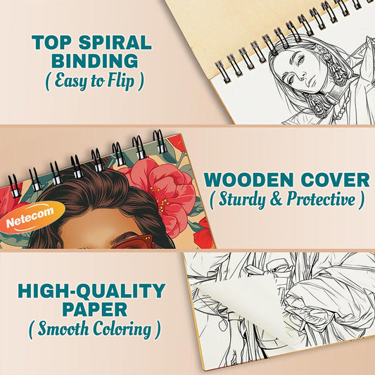 Netecom Fashion Coloring Book Spiral Bound For Adult...
