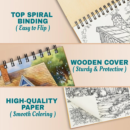 Netecom Enchanted Cottages Coloring Book Spiral Boun...