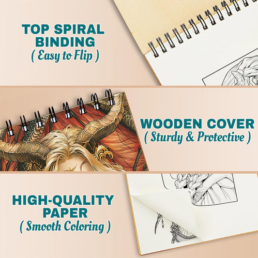 Netecom Dragon Girl Coloring Book for Adults, A5 Woo...