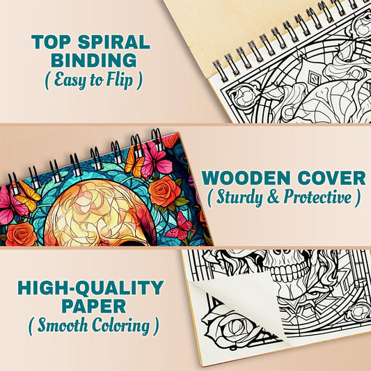 Skull Stained Glass Coloring Book Spiral Bound For A...