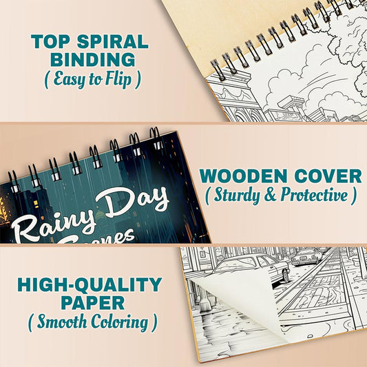 Rainy Day Scenes Coloring Book Spiral Bound For Adul...
