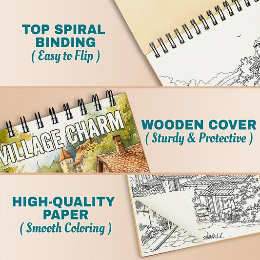 Village Charm Coloring Book Spiral Bound For Adults,...