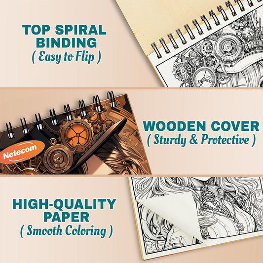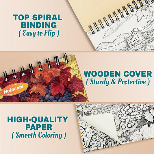 Netecom Wolf Coloring Book Spiral Bound for All Ages...