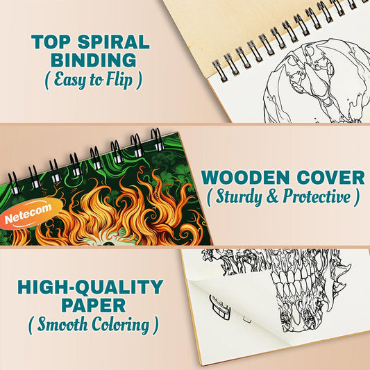 Netecom Wicked Skulls Coloring Book Spiral Bound For...