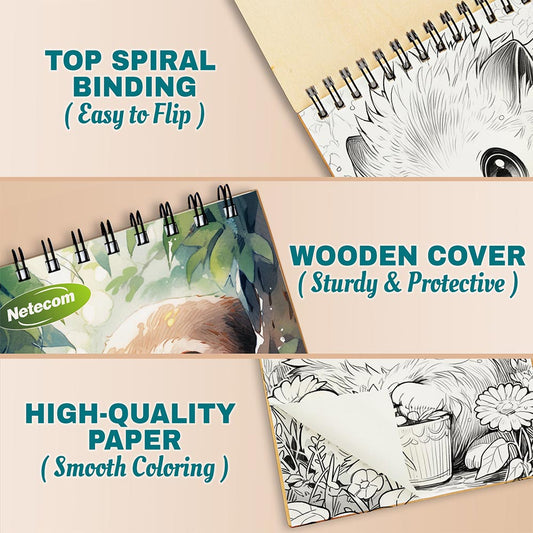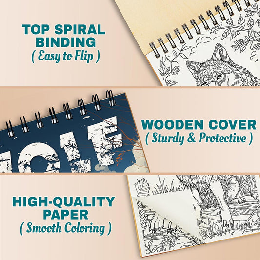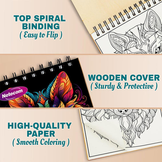 Netecom Wildlife Coloring Book Spiral Bound for Adul...