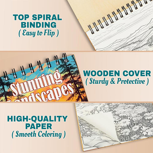Stunning Landscapes Coloring Book Spiral Bound For A...