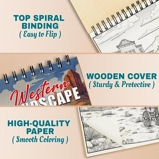 Western Landscape Coloring Book Spiral Bound For Adu...