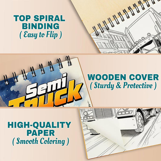 Semi Truck Coloring Book Spiral Bound For Adults, A5...