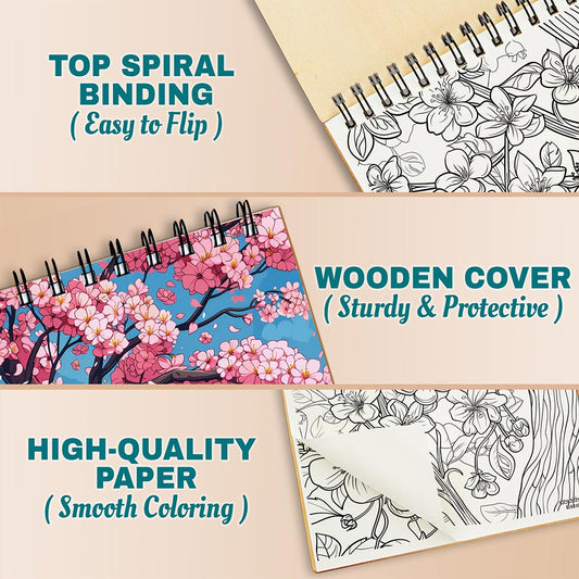 Netecom Cherry Coloring Book for Adults, A5 Wooden C...