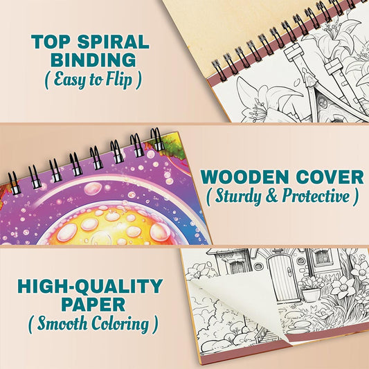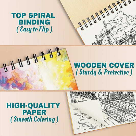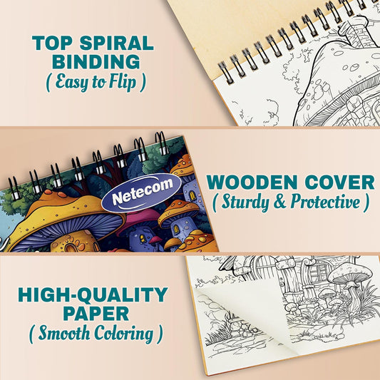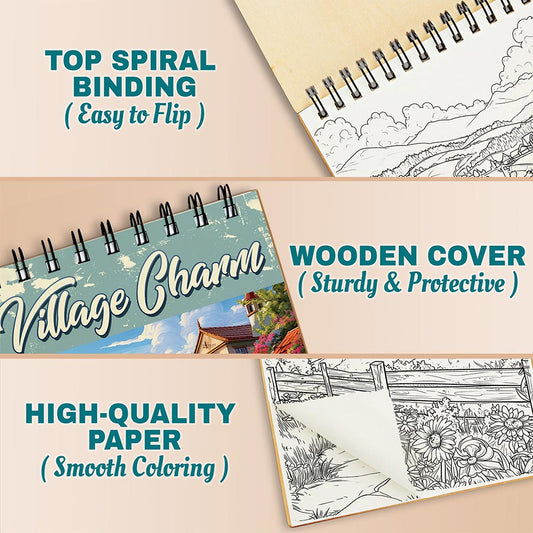 Netecom Village Charm Coloring Book Spiral Bound for...