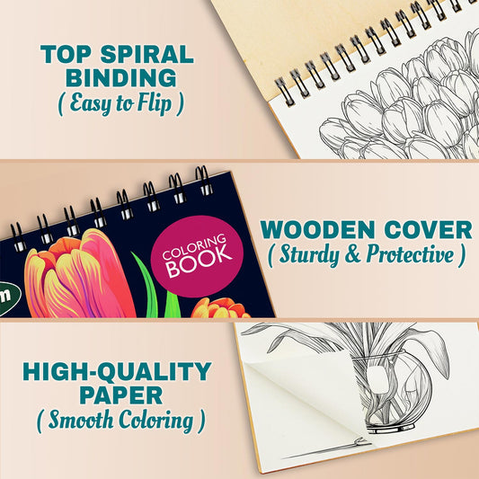 Netecom Tulips Flowers Coloring Book for Adults, A5 ...