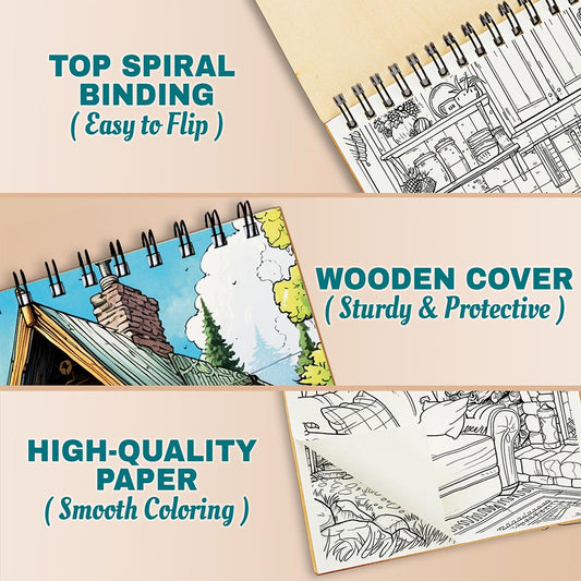 Netecom Woodland Cozy Cabins Coloring Book Spiral Bo...