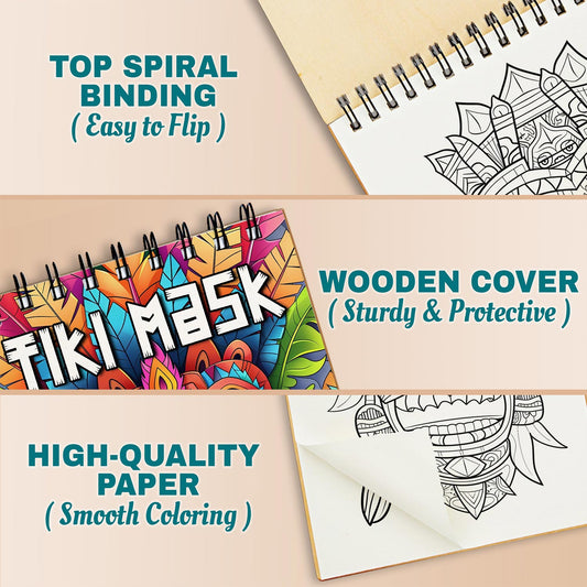 Netecom Tiki Mask Coloring Book Spiral Bound for Adu...