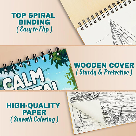 Netecom Calm Coastal Coloring Book Spiral Bound for ...