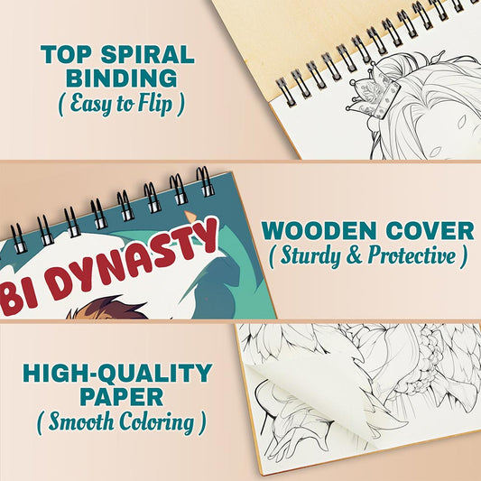 Netecom Chibi Dynasty Coloring Book Spiral Bound for...