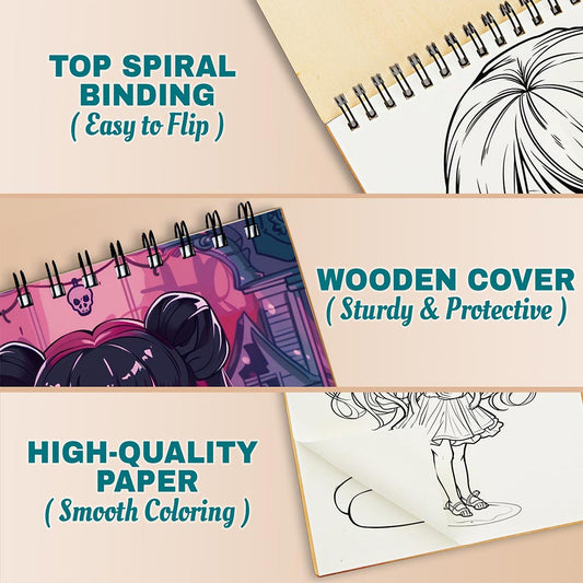 Netecom Chibi Gothic Girls Coloring Book Spiral Boun...