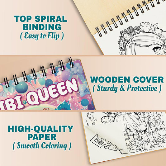 Netecom Chibi Queen Coloring Book Spiral Bound for A...