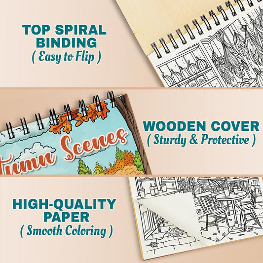 Netecom Autumn Scenes Coloring Book Spiral Bound for...