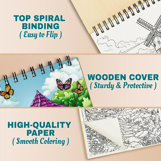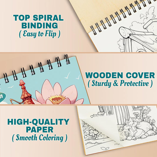 Netecom Adorable Town Spiral Bound Coloring Book for...