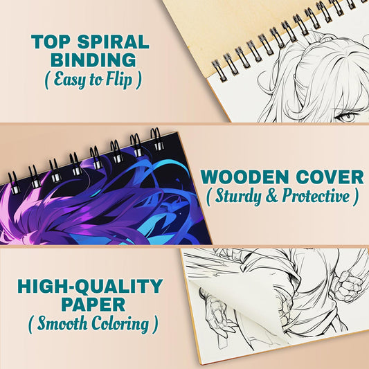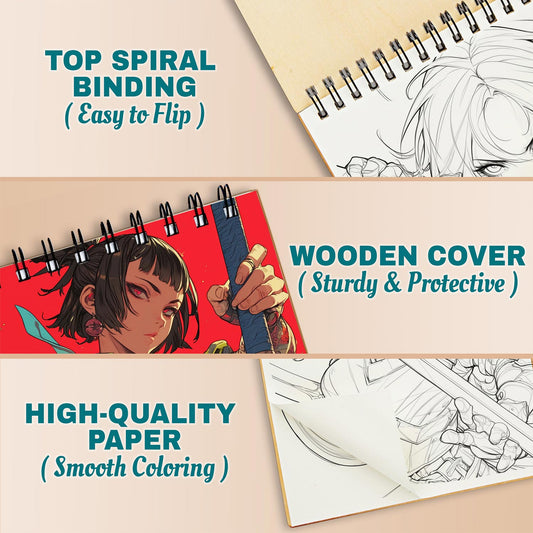 Netecom Anime Warrior Girl Coloring Book Spiral Boun...