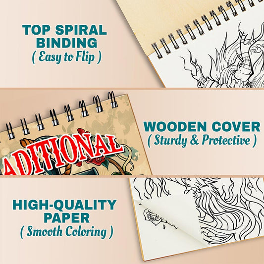 Netecom Traditional Tattoo Coloring Book Spiral Boun...