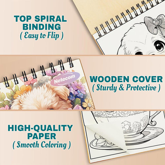 Netecom Teacup Puppies Coloring Book Spiral Bound Fo...