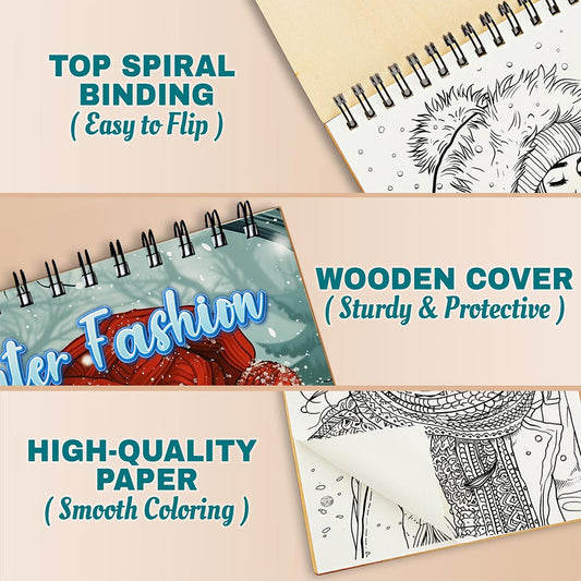 Netecom Winter Fashion Coloring Book Spiral Bound fo...