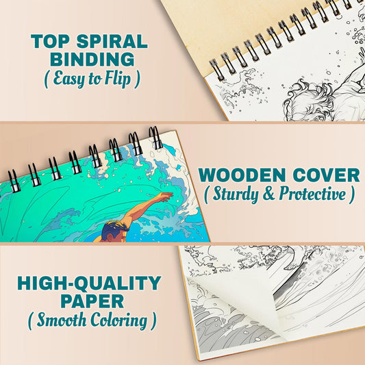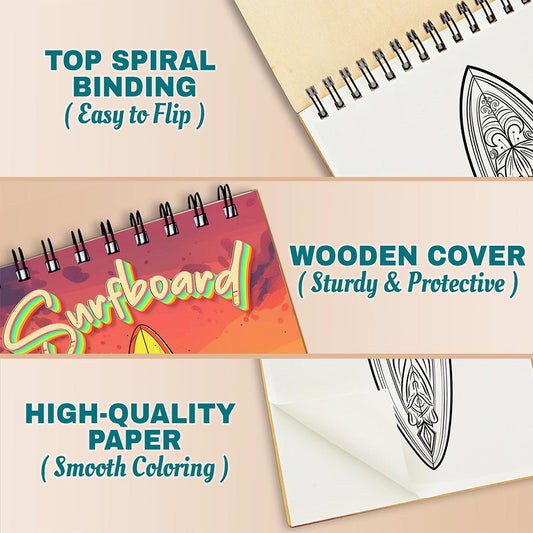 Netecom Surfboard Coloring Book for Adults, A5 Woode...