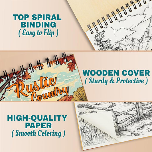 Netecom Rustic Country Coloring Book Spiral Bound fo...