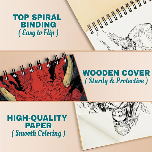 Netecom Oni Mask Coloring Book for Adults, A5 Wooden...
