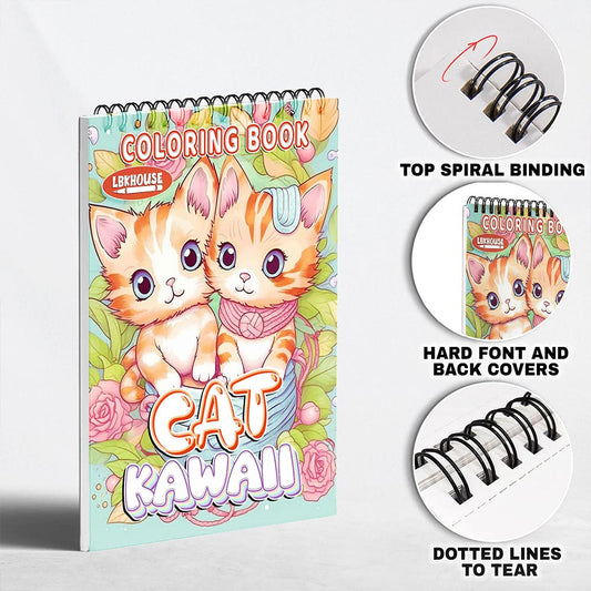 LBKHOUSE Kawaii Cat Coloring Book for Adult, Spiral ...