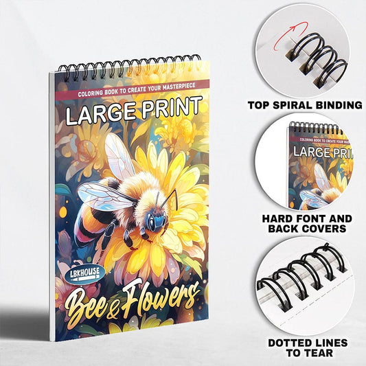 LBKHOUSE Large Print Bees and Flowers Coloring Book ...