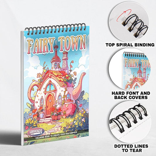 LBKHOUSE Fairy Town Coloring Book Spiral Bound for A...