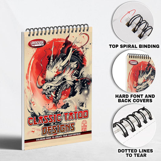 LBKHOUSE Classic Tattoo Designs Coloring Book Spiral...