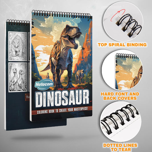 Dinosaur Spiral Bound Coloring Book, Prehistoric Din...