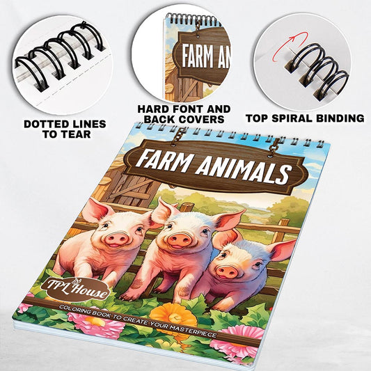 Farm Animals Spiral Bound Coloring Book, Charming Fa...