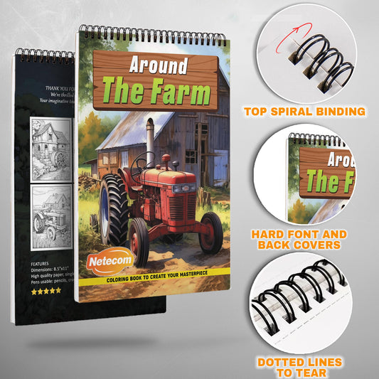 Around the Farm Spiral Bound Coloring Book, Rustic F...
