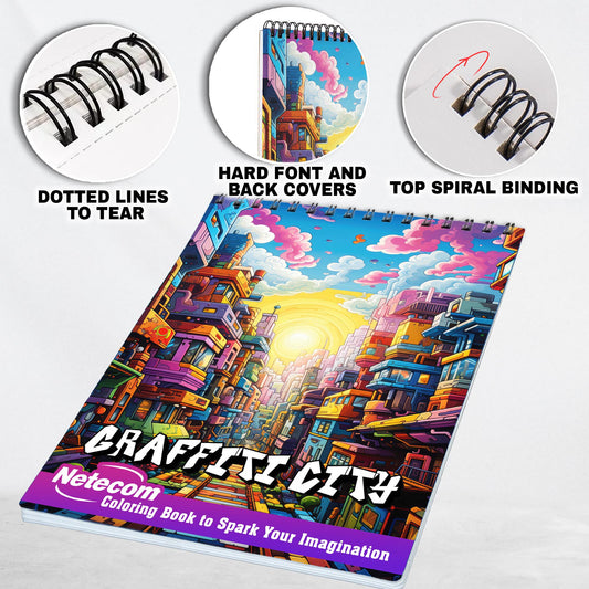 Netecom Graffiti City Spiral Bound Coloring Book, 30...